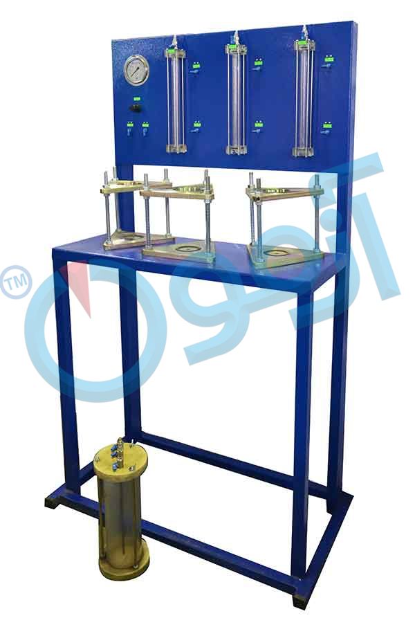 مقدار عمق نفوذ آب در بتن بر اساس زمان و فشار معین توسط این وسیله سنجیده می‌شود. نمونه قالب 200x200x120mm   درون محفظه تحت فشارتا 10bar مطابق استاندارد  قرار گرفته و میزان آب وارد شده از روی سیلندر مدرج 200cc قابل اندازه‌گیری می‌باشد.
